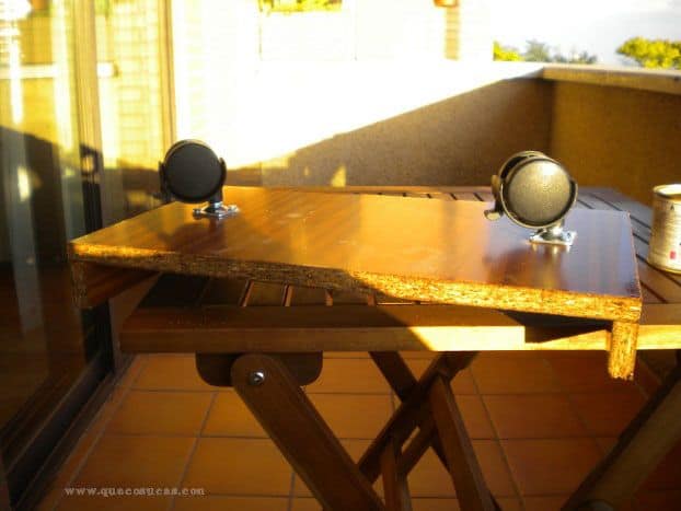 Otro de los pasos que se pueden dar, depende del tipo de madera. Si no tiene ningún tratamiento, ya que va a estar a la intemperie, sería aplicar algún producto para madera que alargue su vida y la proteja de las inclemencias. Nosotros lo aplicamos sólo en los laterales. Y así tenemos el resultado final.